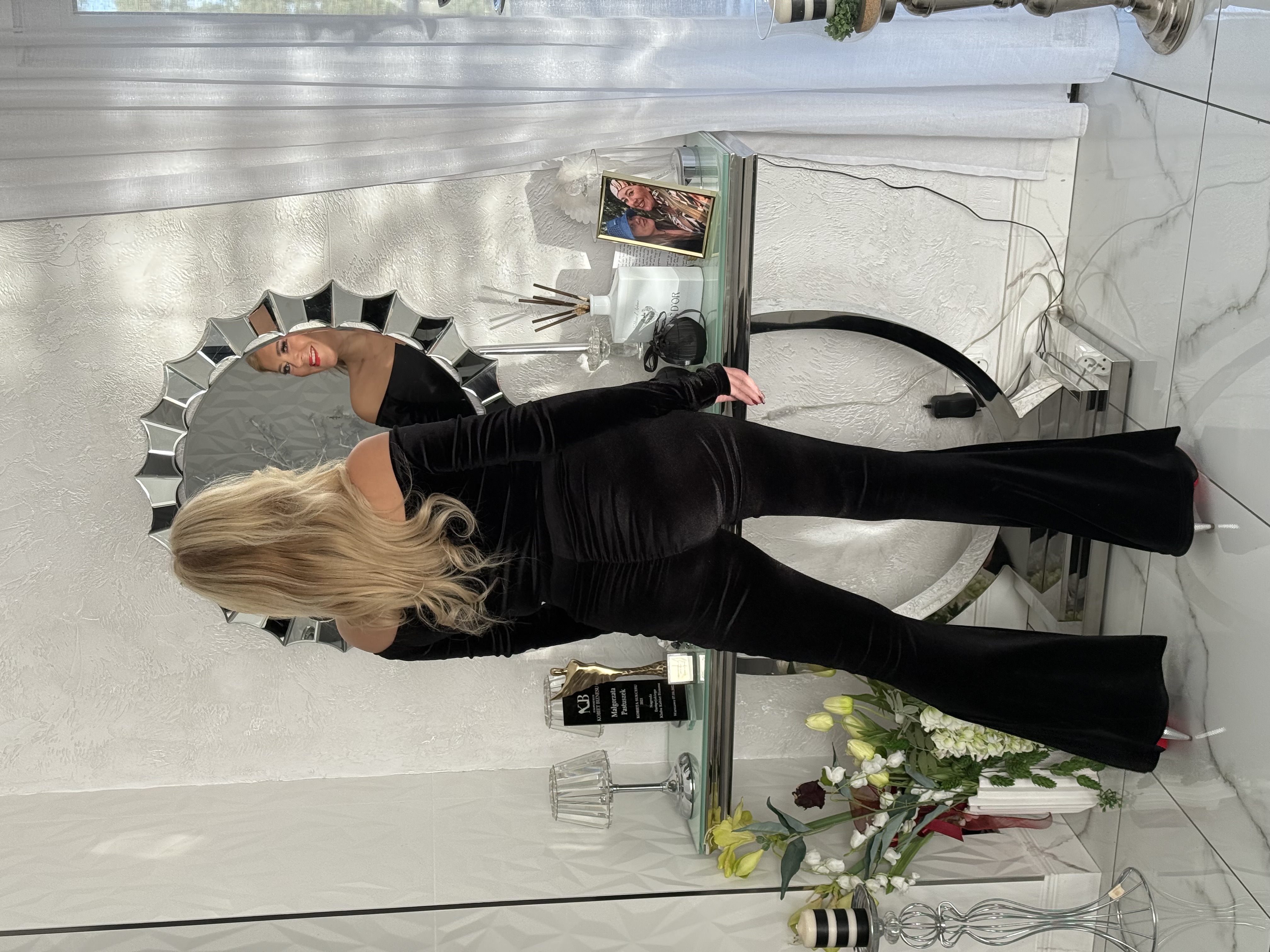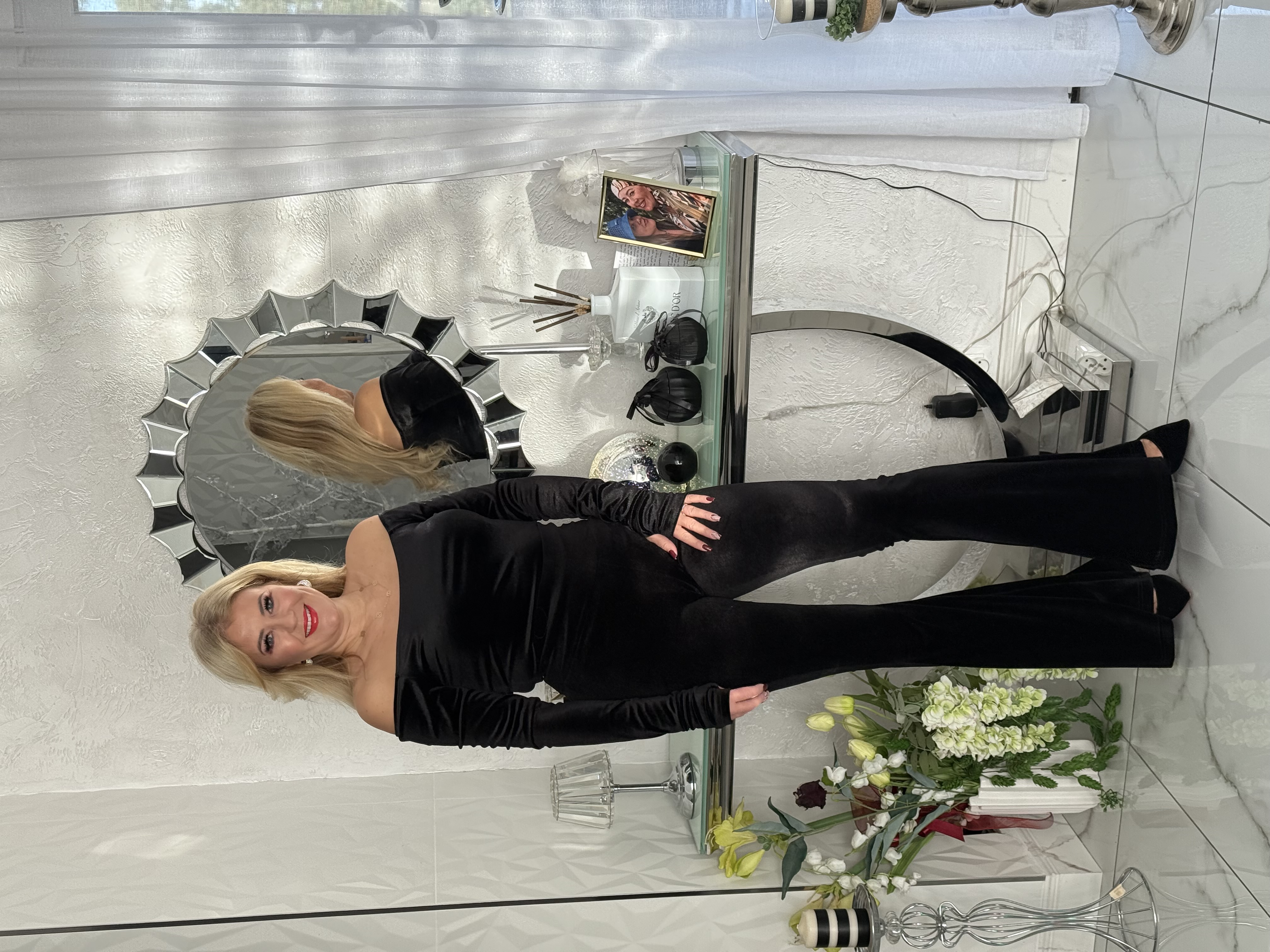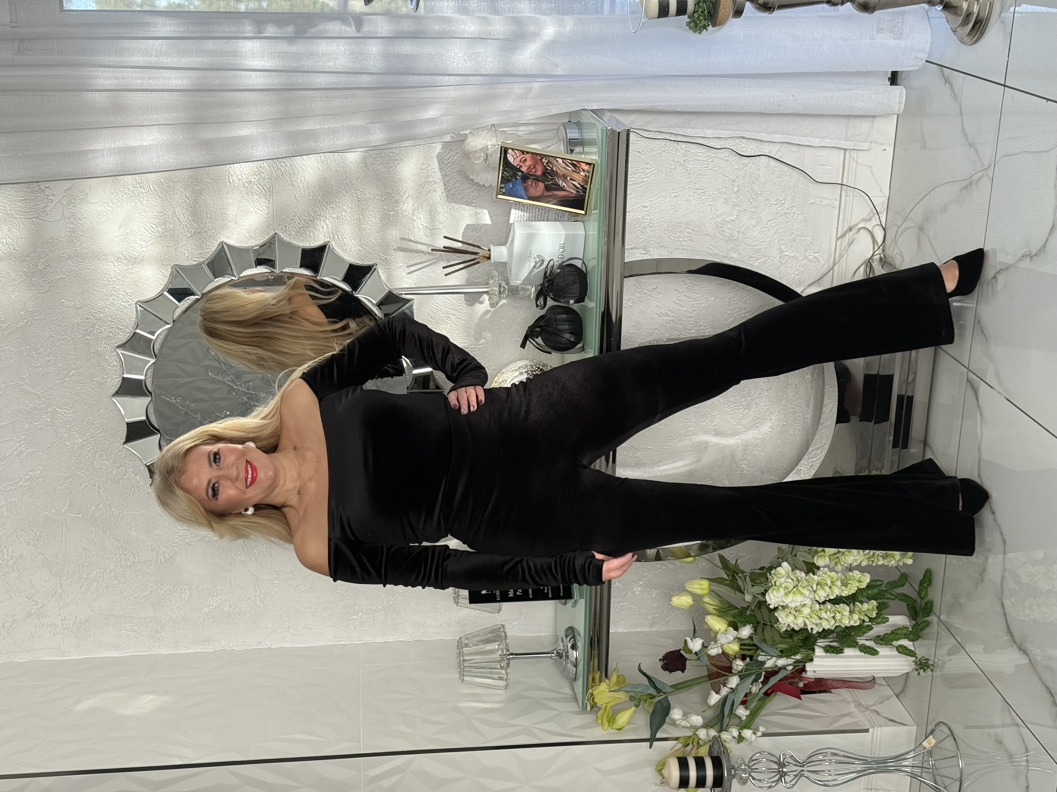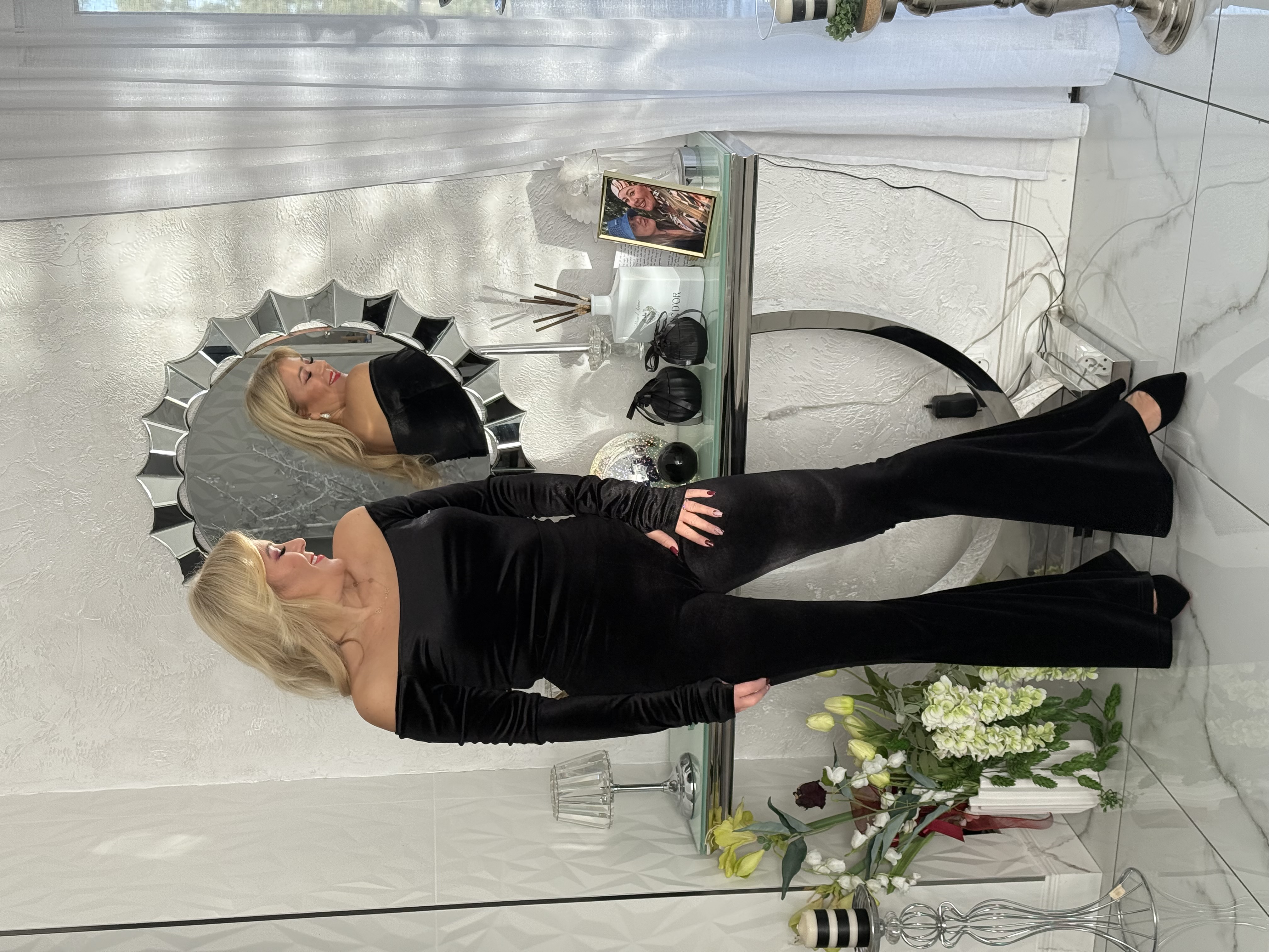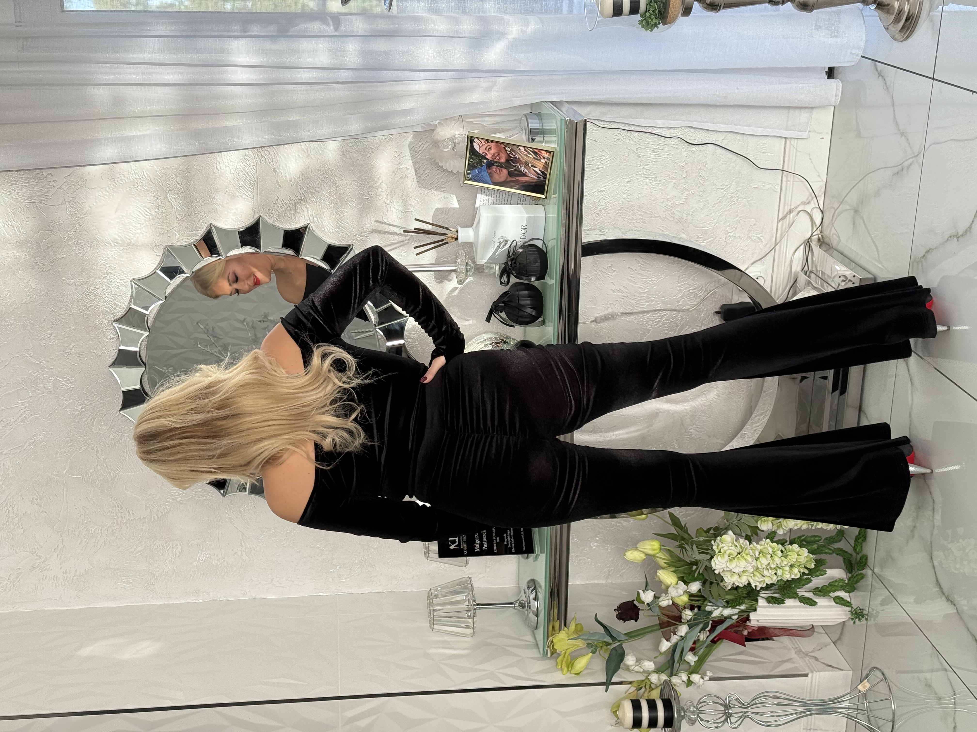 SPODNIE DZWONY CZARNE WELUR