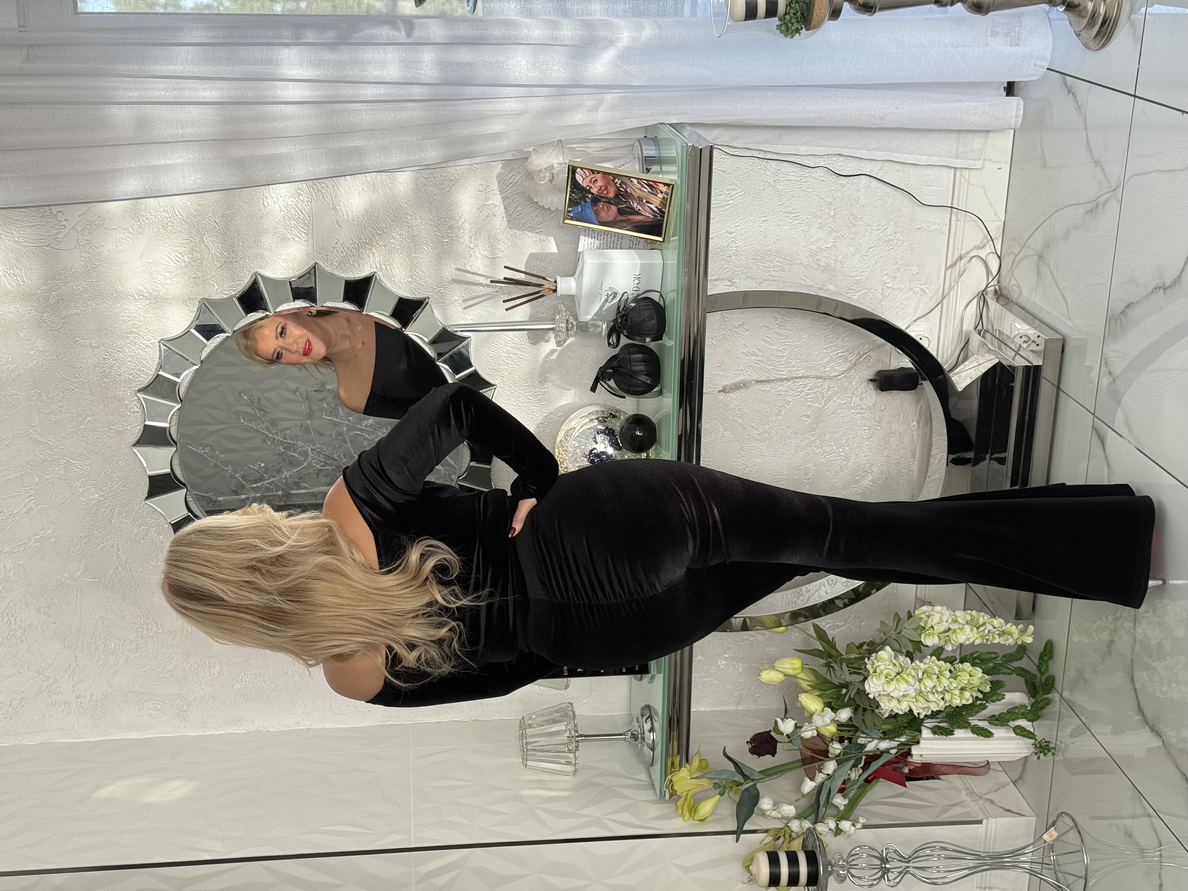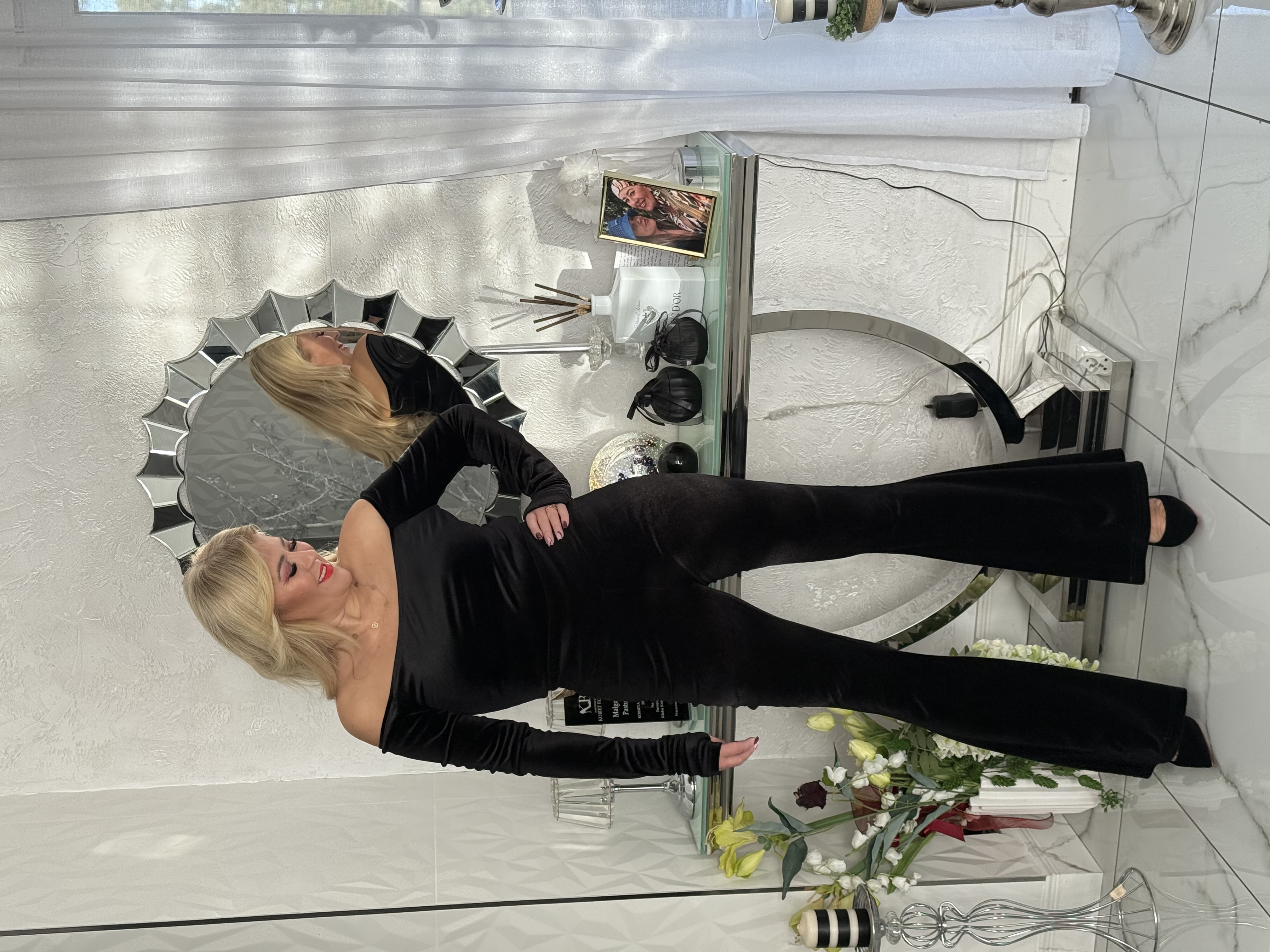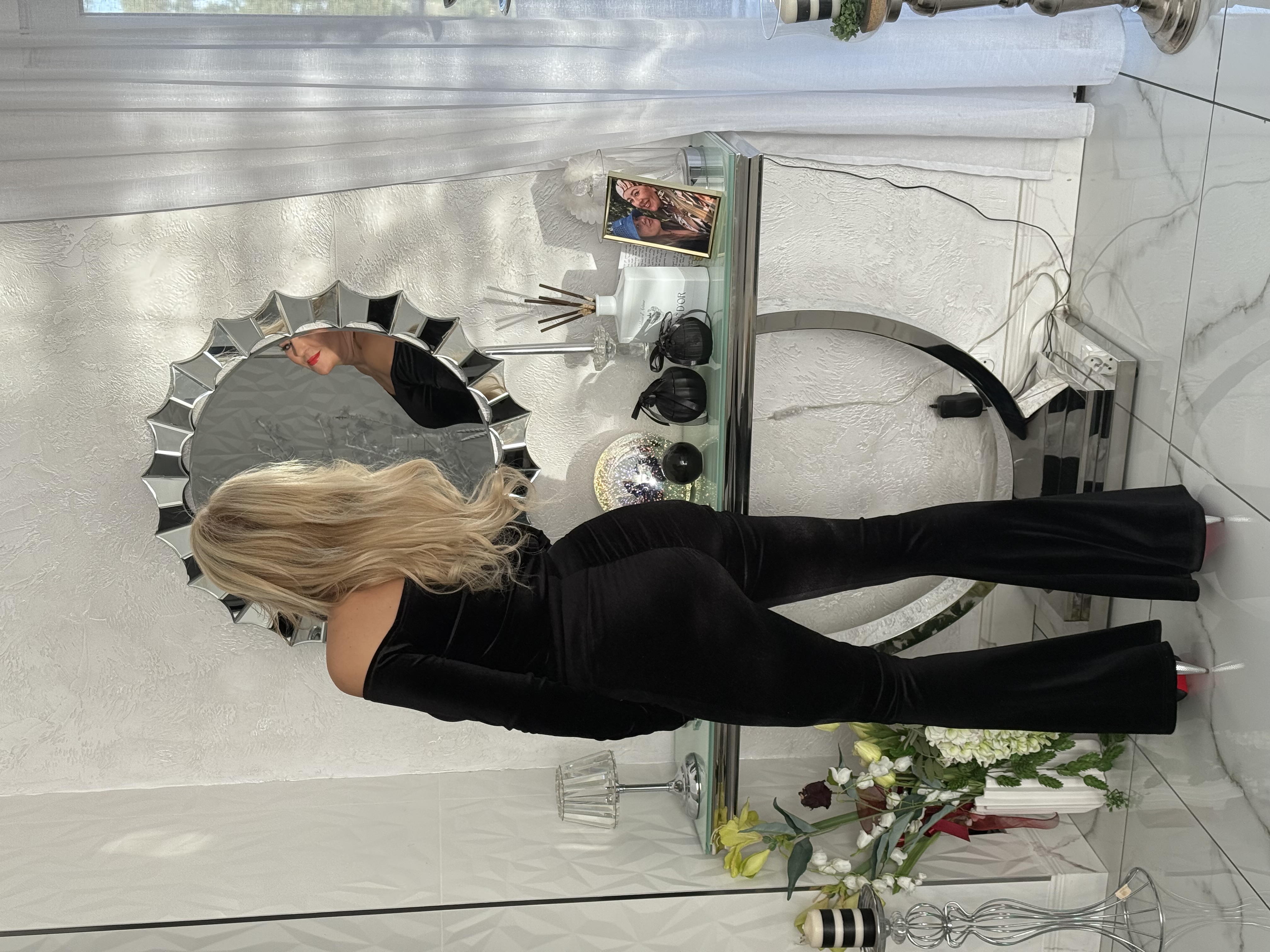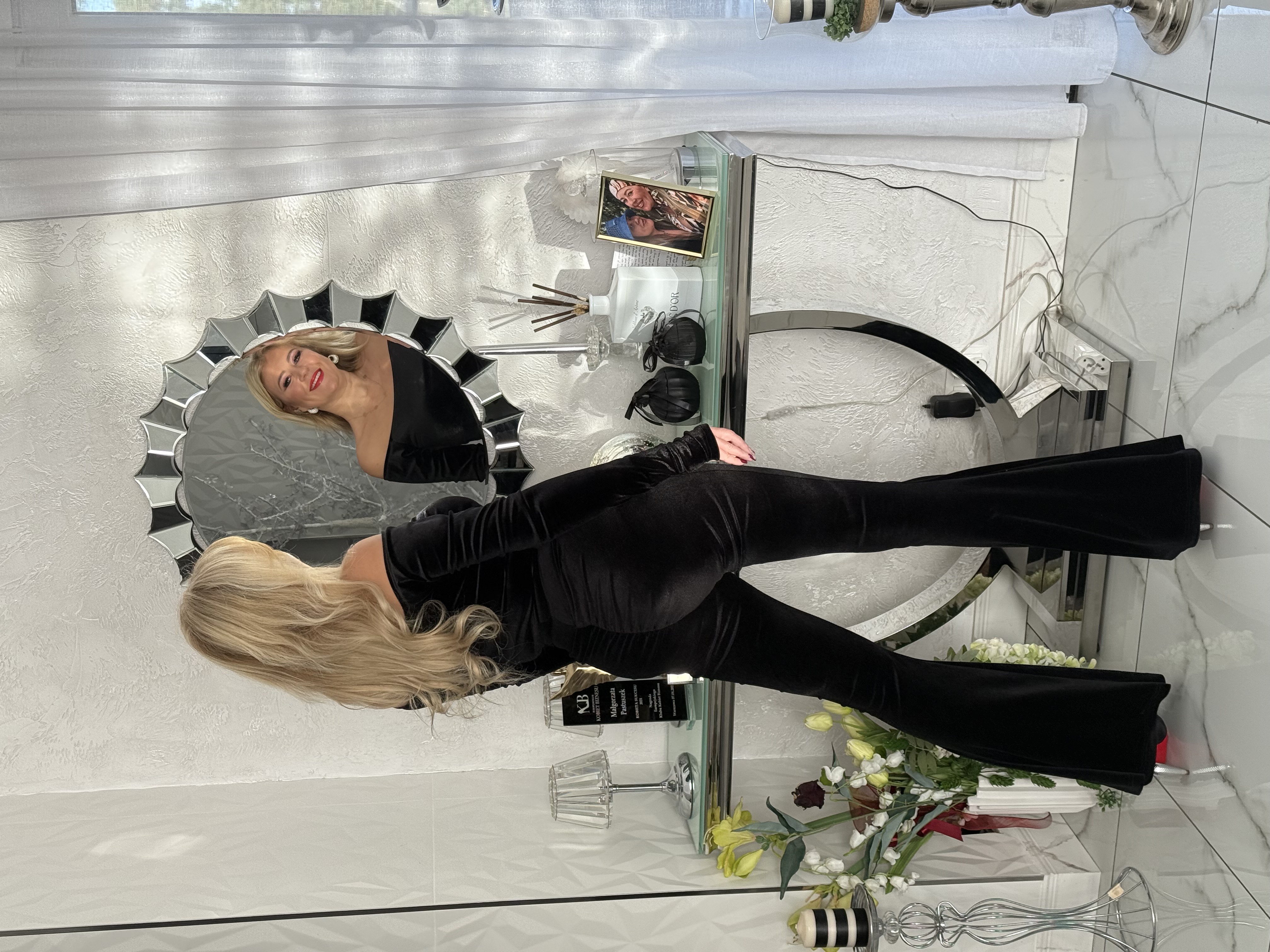 SPODNIE DZWONY CZARNE WELUR