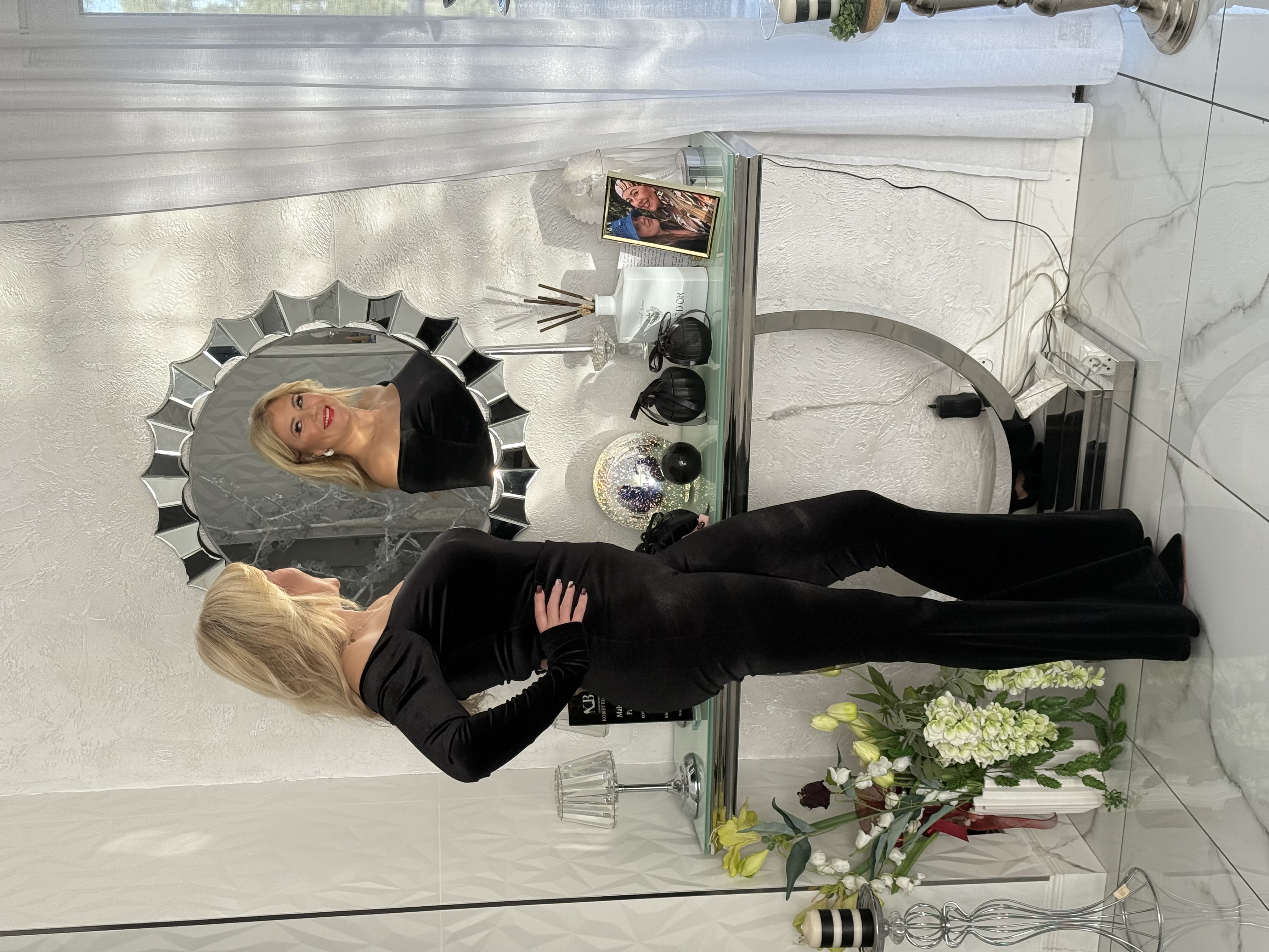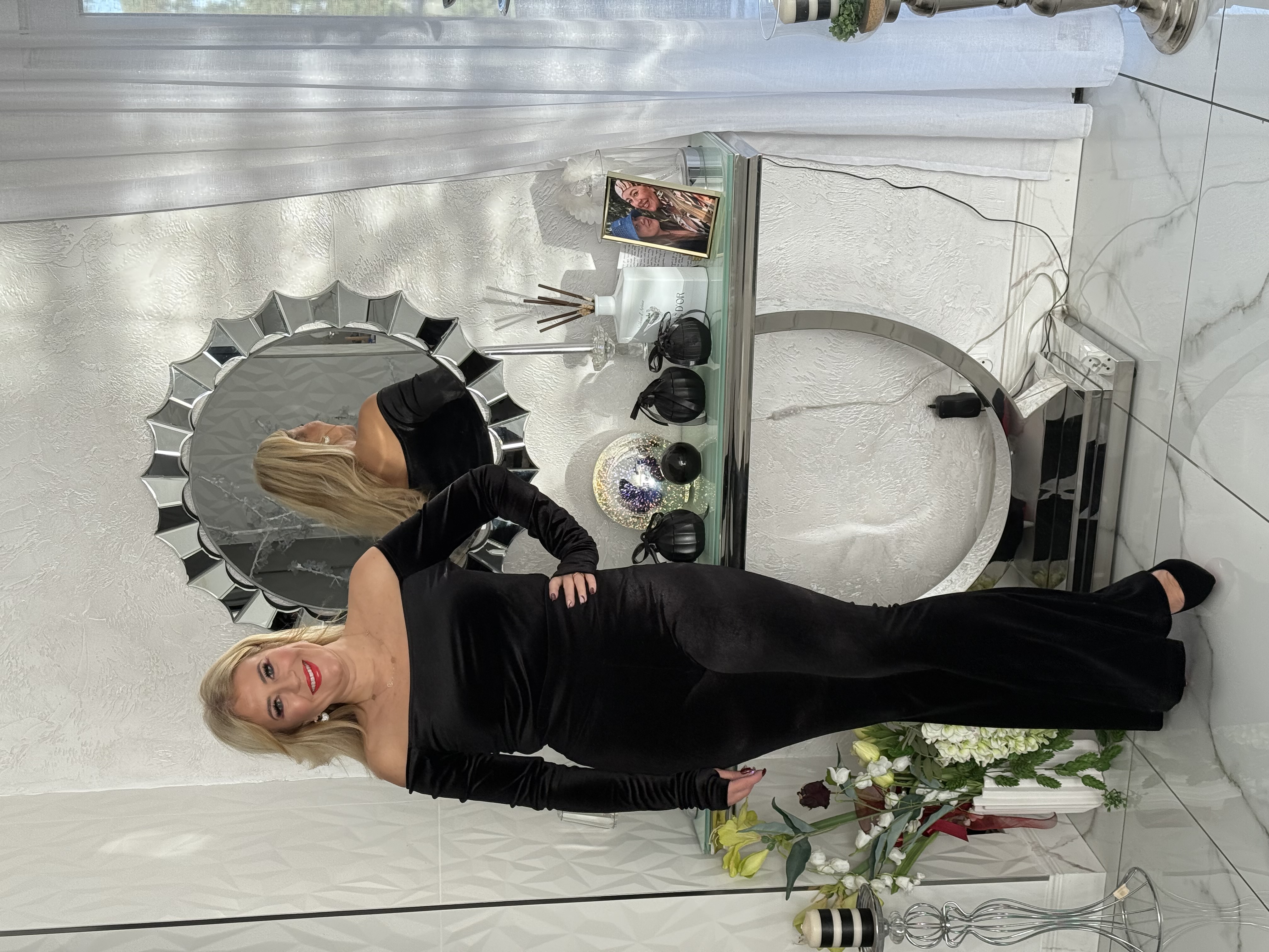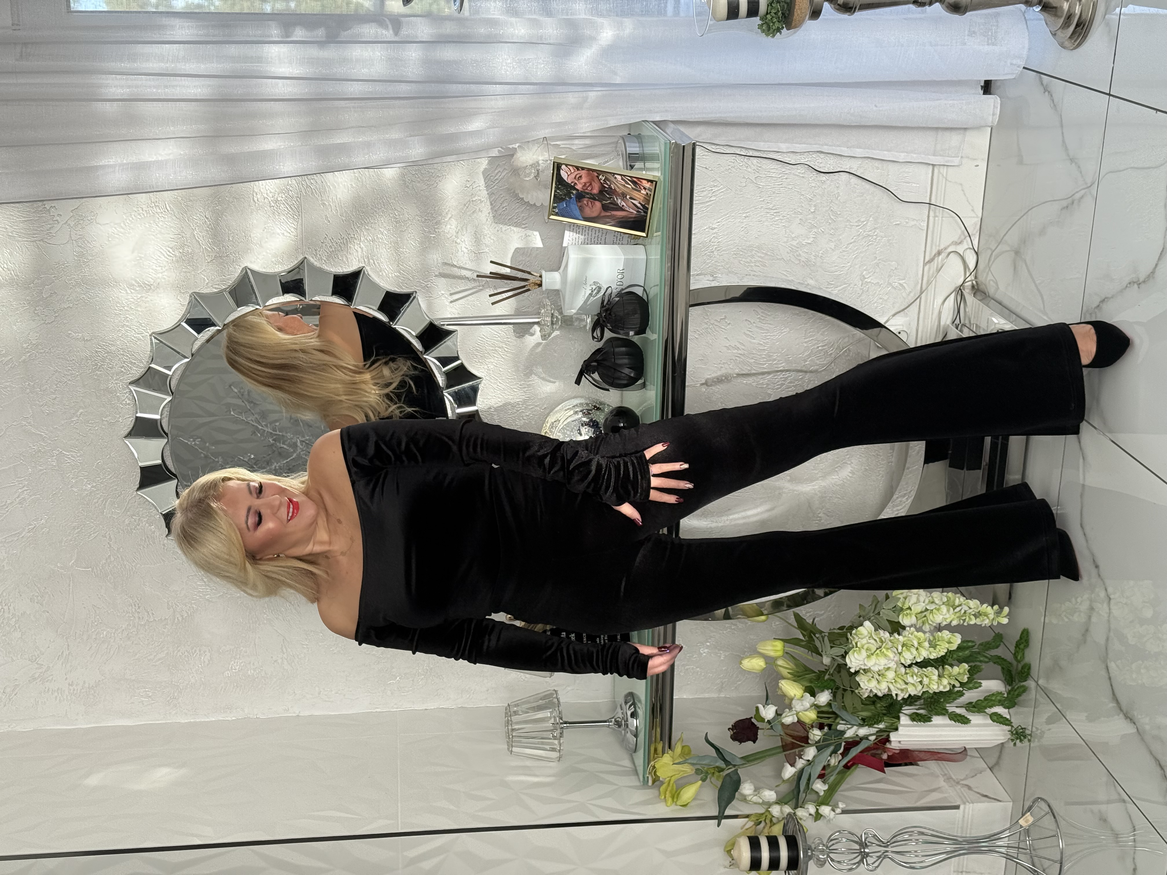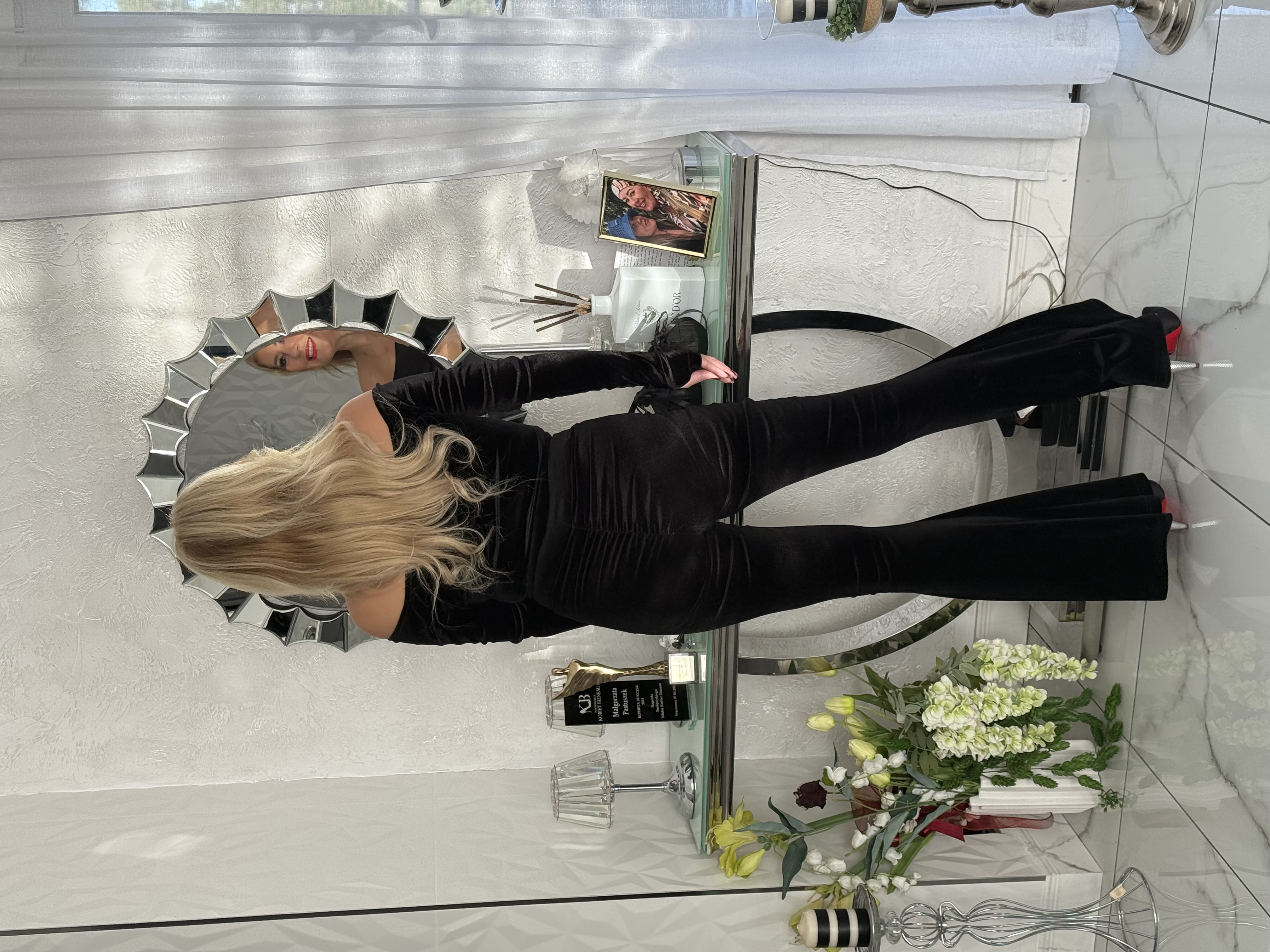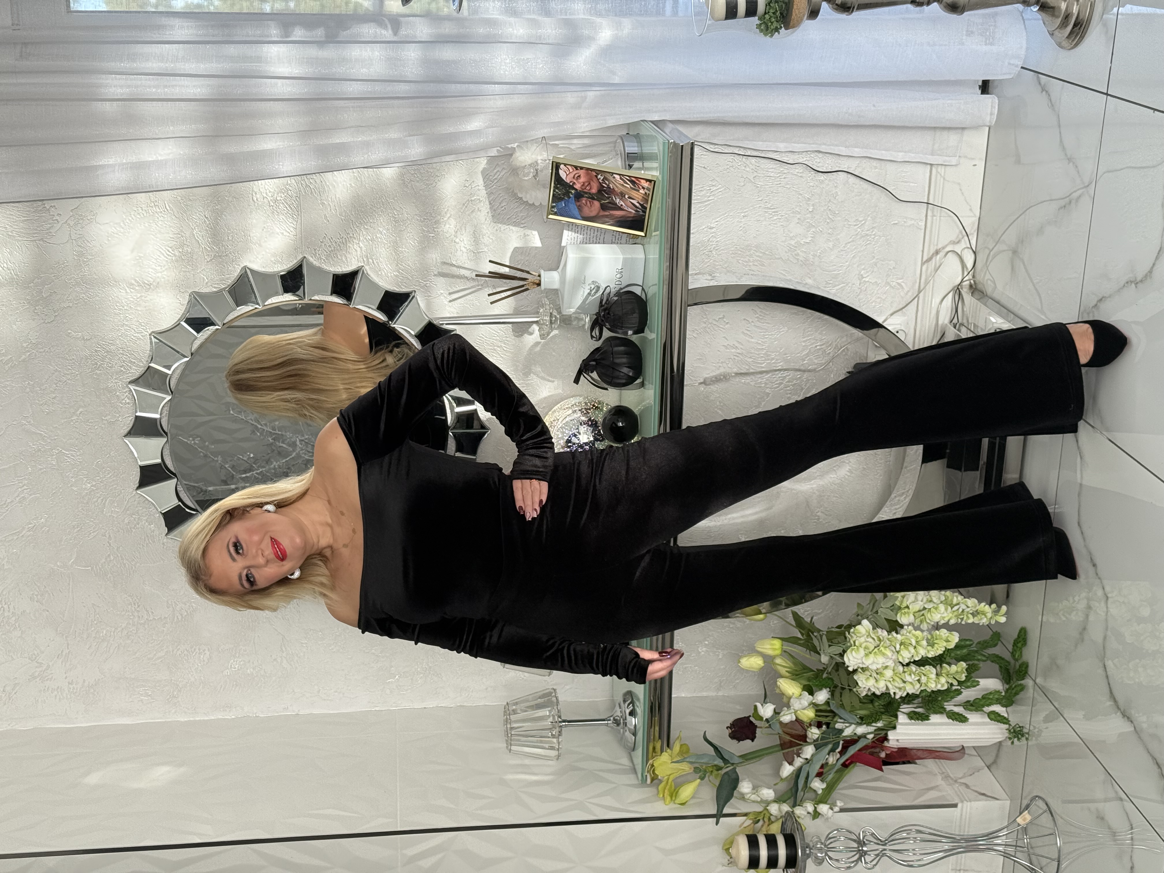 SPODNIE DZWONY CZARNE WELUR