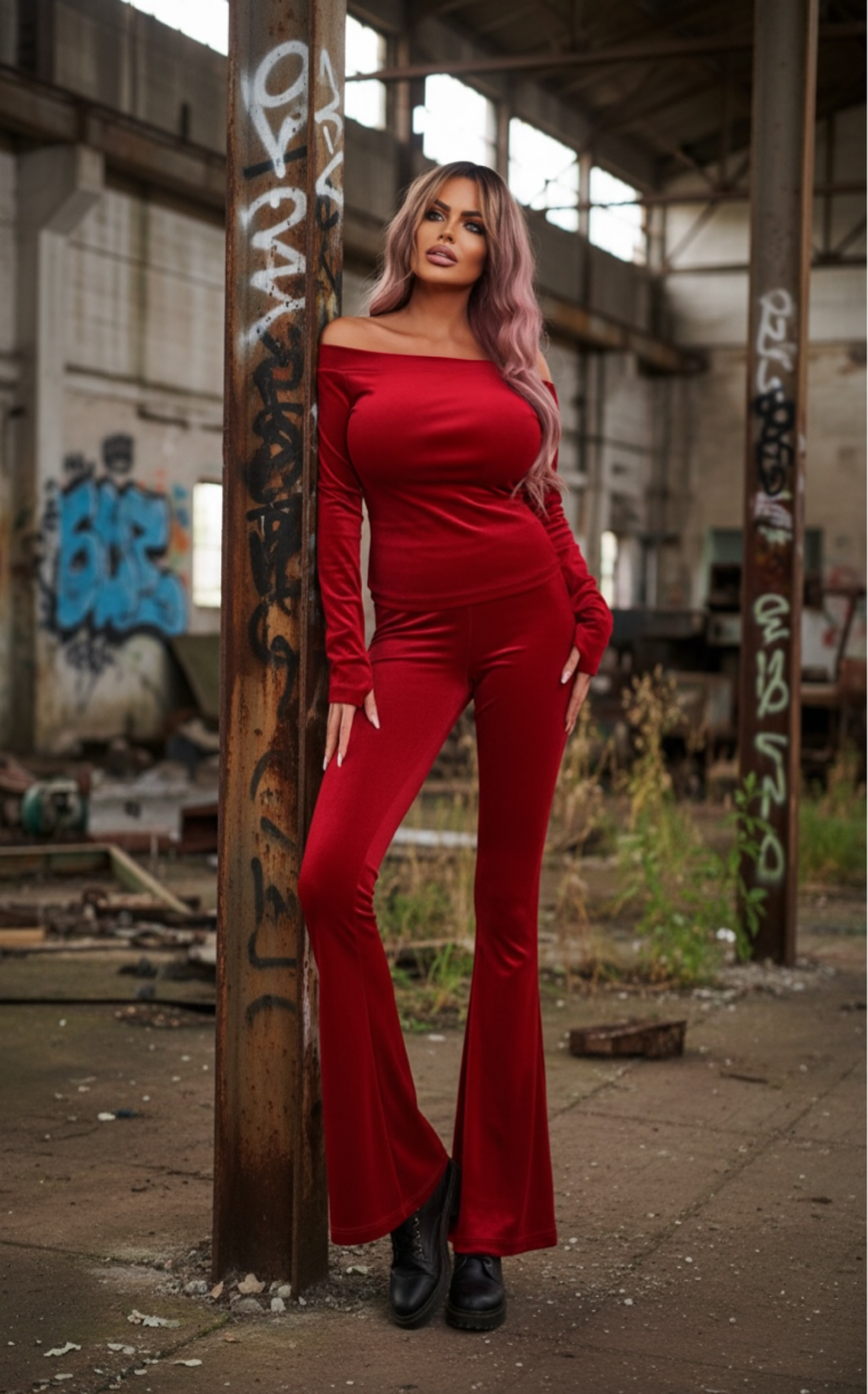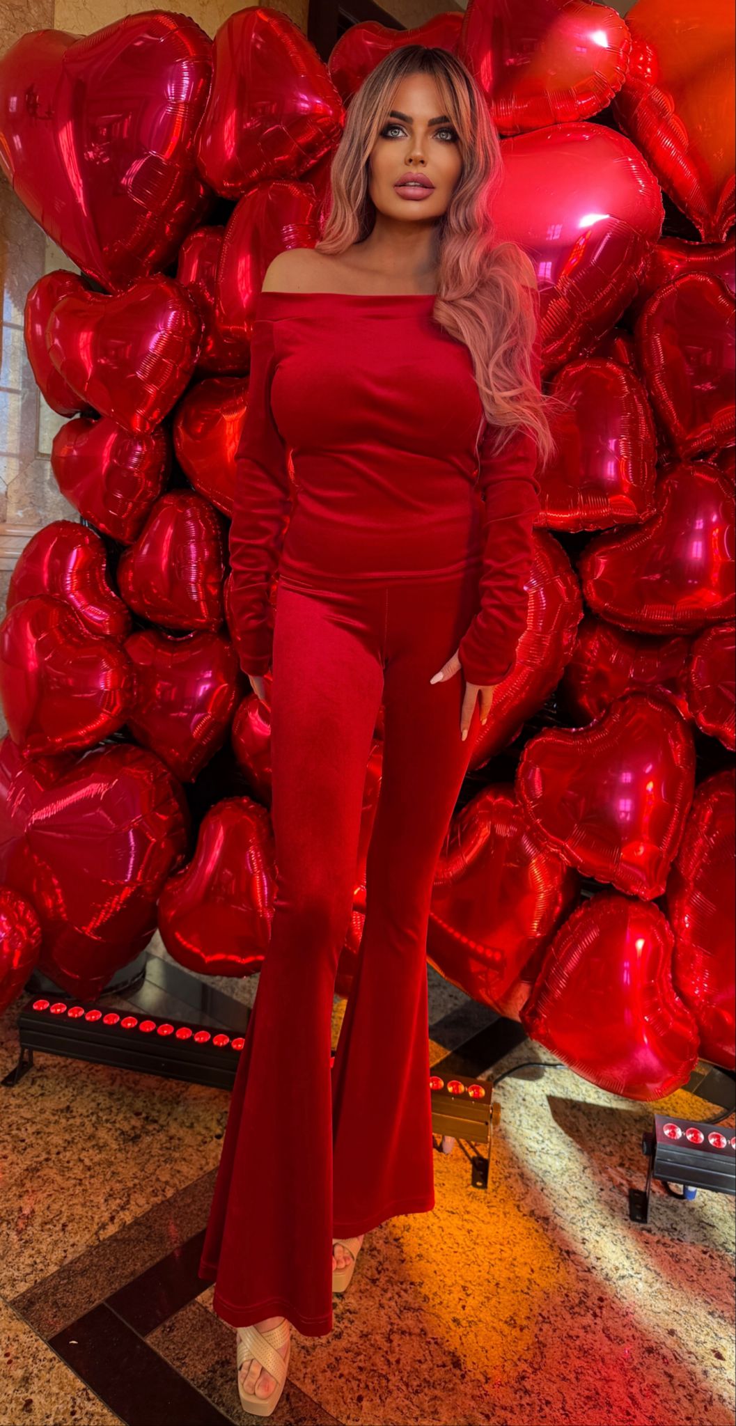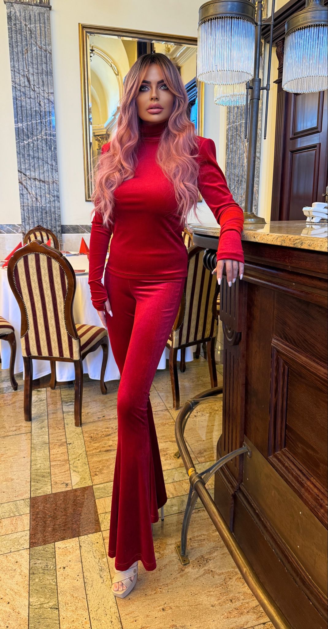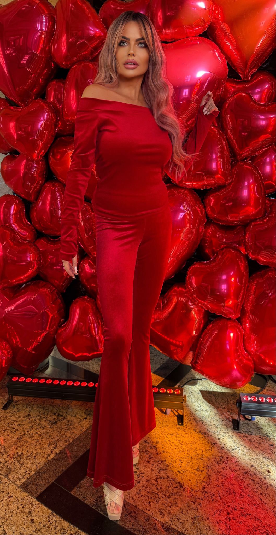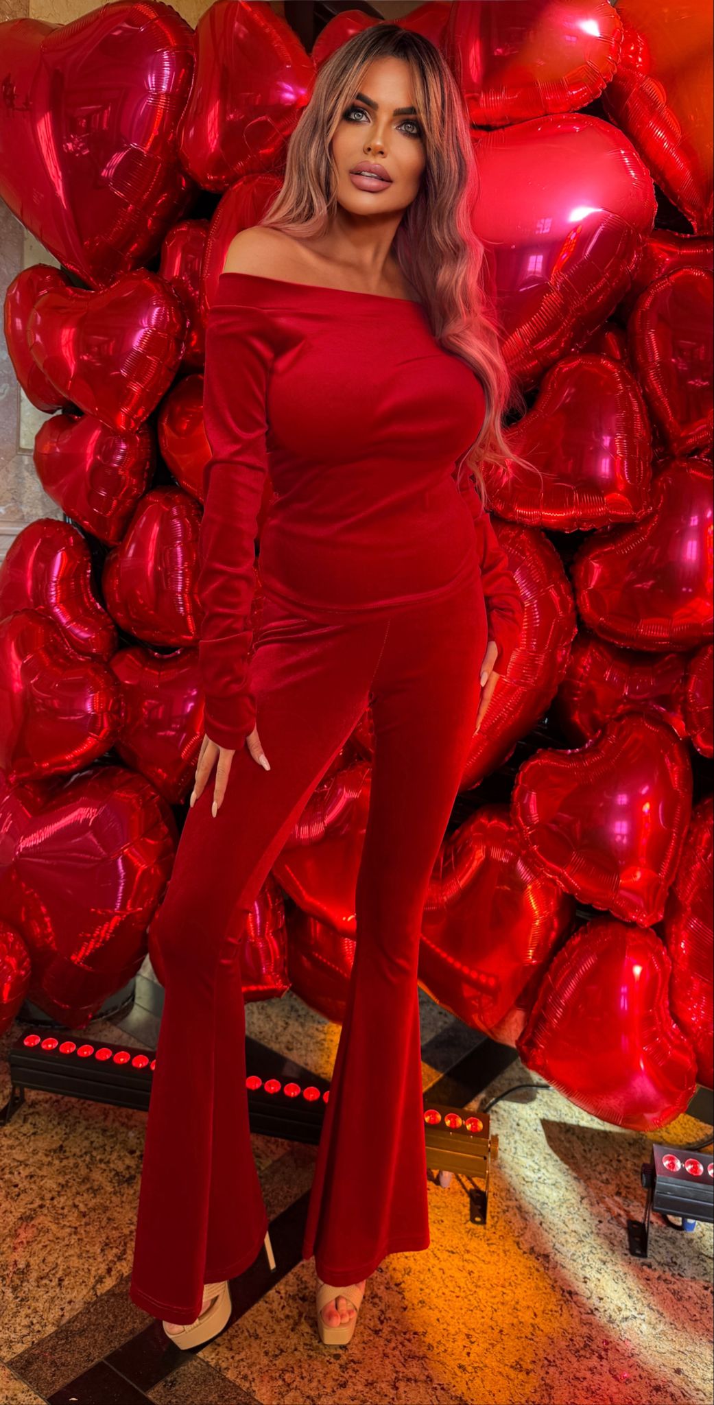 Czerwone welurowe dzwony z kolekcji Queen of Stars to połączenie wygody, elegancji i kobiecego wdzięku.